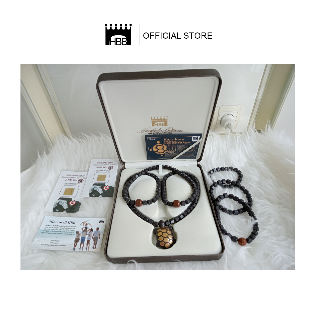 Kalung Habibi Kesehatan Kura Kura adalah Bahan yang digunakan Kalung dan Gelang Kesehatan Habibi terbuat dari mineral batu Gwisamunsok asli Korea dan rahasia kesehatan kebugaran plus vitalitas orang Korea dari sejak zaman dahulu sampai sekarang. Gwisamunsok memiliki bahan berlimpah yang berguna untuk tubuh manusia seperti magnesium, kalsium, sodium, besi, silicon.